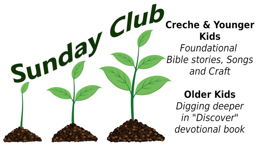 SUNDAY CLUB – Along with creche, Sunday Club aims to welcome children to Church on Sundays, and help them grow in their knowledge of the bible and apply it to their lives as their faith shapes their choices, attitudes and actions in life. We believe the gospel is the best foundation to build their lives on.
